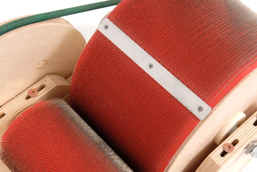 Both drums are layered and therefore the carder can be used without using a lot of strength. The drum carder is supplied including a wrench in order to modify the position of both drums to any preferred position. With the table clamps you can fix the drum to the table. It includes a doffer pin and cleaning brush in order to remove all the fibers.